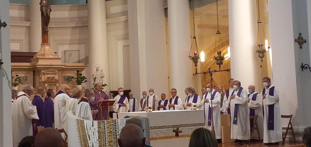 Viviamo anche in questa celebrazione l’affidamento pieno al Padre espresso nelle parole del salmo che abbiamo insieme cantato: “il Signore è il mio pastore, non manco di nulla” (Sal 23), con le quali don Bruno ha voluto esprimere il senso di quanto ha imparato nel suo servizio di assistenza spirituale in Casa di Riposo e al Piccolo Rifugio, dopo il suo ministero di parroco qui a San Donà. Si è sentito guidato, preso per mano e accompagnato dal Signore, “Ho dato poco e ricevuto molto…, quanti esempi di Fede, di preghiera, di fortezza nella prova, di serenità da parte di persone semplici…il Signore costruisce la santità nell’umiltà della vita”.